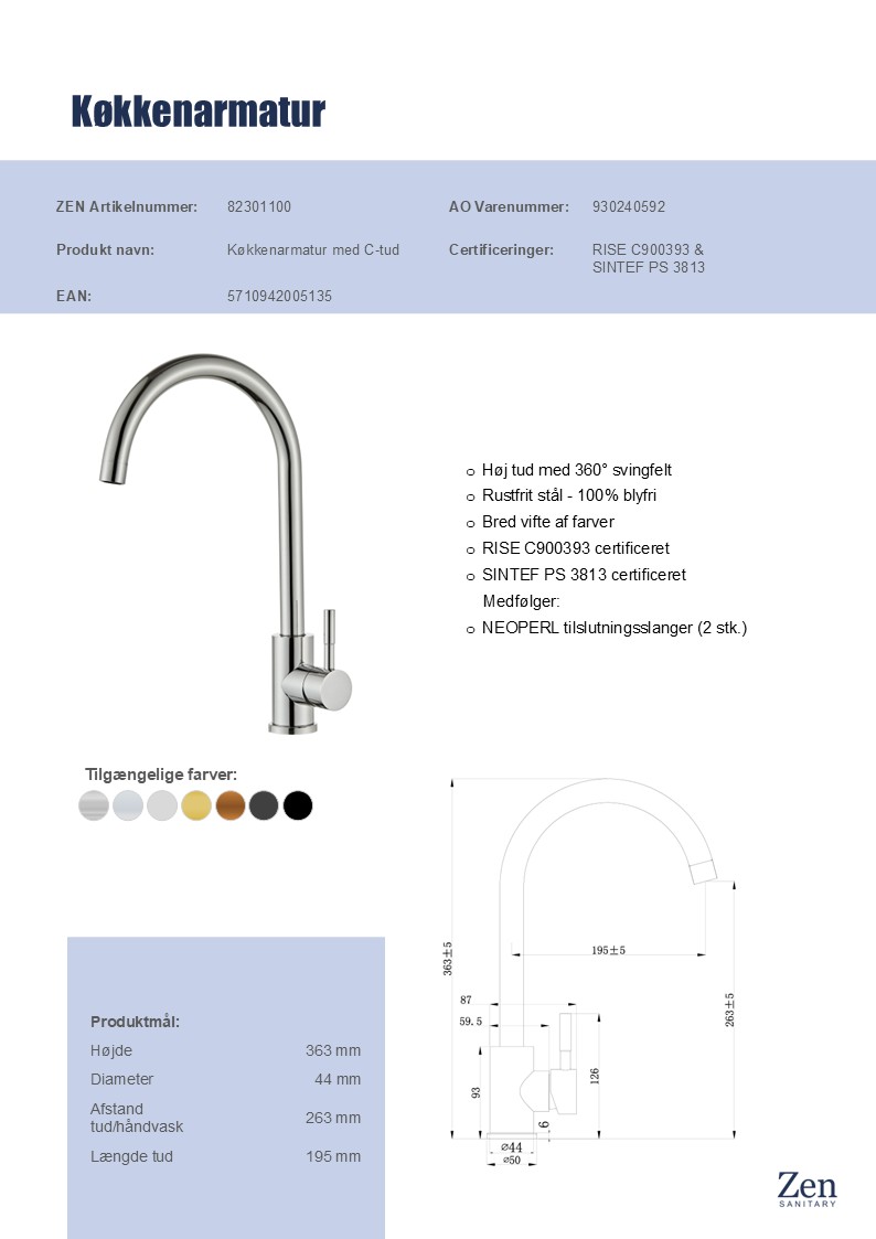 Zen køkkenarmaturet er skabt til dig, der ønsker både æstetik og brugervenlighed. Den svingbare tud og det enkle greb gør det let at styre vandet, mens det rene design løfter køkkenets samlede udtryk.