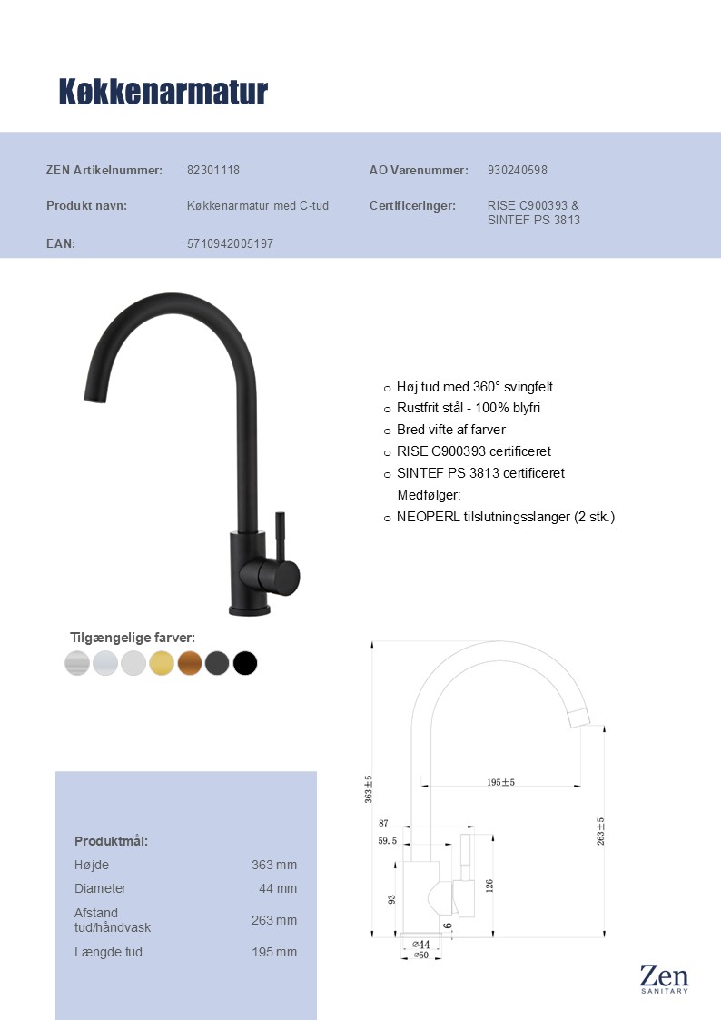 Zen køkkenarmaturet er skabt til dig, der ønsker både æstetik og brugervenlighed. Den svingbare tud og det enkle greb gør det let at styre vandet, mens det rene design løfter køkkenets samlede udtryk.