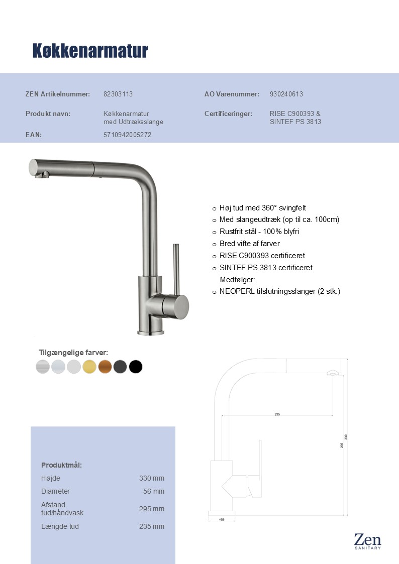 Med Zen køkkenarmatur får du et pålideligt og stilrent valg, der kombinerer moderne design med praktiske funktioner. Det er detaljerne, der gør forskellen i dit køkken, og med denne køkken vandhane får du både funktionalitet og et visuelt løft.