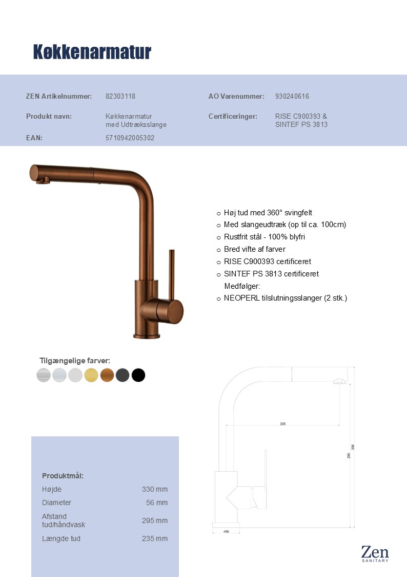 Med Zen køkkenarmatur får du et pålideligt og stilrent valg, der kombinerer moderne design med praktiske funktioner. Det er detaljerne, der gør forskellen i dit køkken, og med denne køkken vandhane får du både funktionalitet og et visuelt løft.