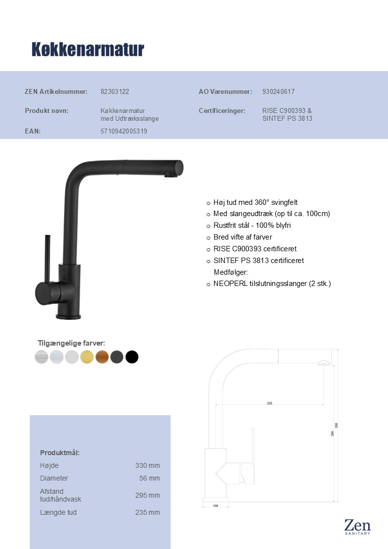 Med Zen køkkenarmatur får du et pålideligt og stilrent valg, der kombinerer moderne design med praktiske funktioner. Det er detaljerne, der gør forskellen i dit køkken, og med denne køkken vandhane får du både funktionalitet og et visuelt løft.