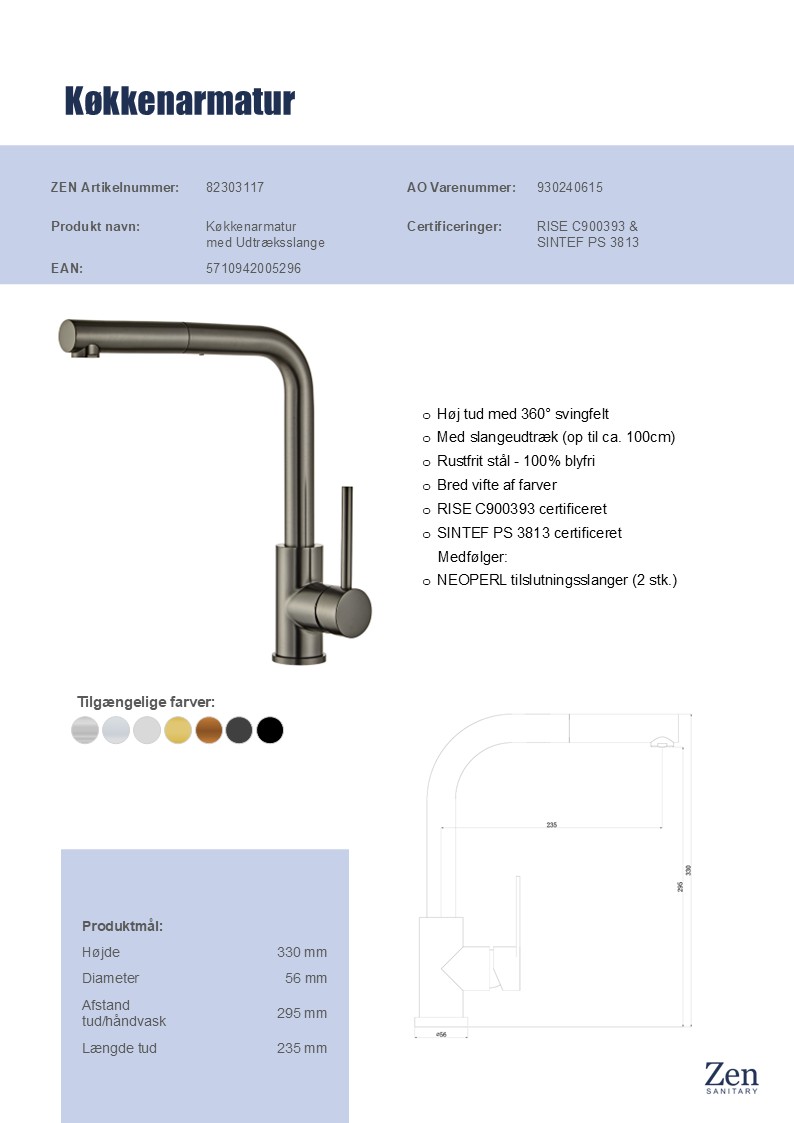 Med Zen køkkenarmatur får du et pålideligt og stilrent valg, der kombinerer moderne design med praktiske funktioner. Det er detaljerne, der gør forskellen i dit køkken, og med denne køkken vandhane får du både funktionalitet og et visuelt løft.