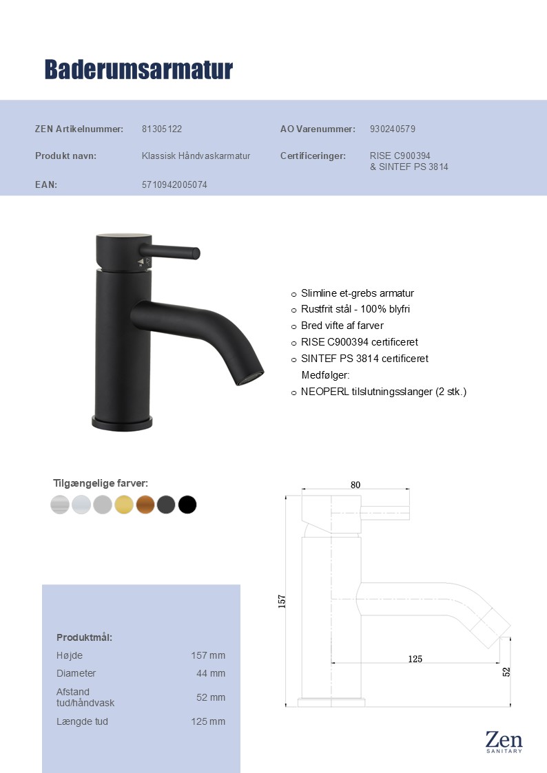 Zen Slimline håndvaskarmatur er det oplagte valg, når du ønsker et stilfuldt og funktionelt element til dit badeværelse. Her får du et armatur, hvor design, materialer og brugervenlighed går hånd i hånd – og som sætter prikken over i’et på din indretning.