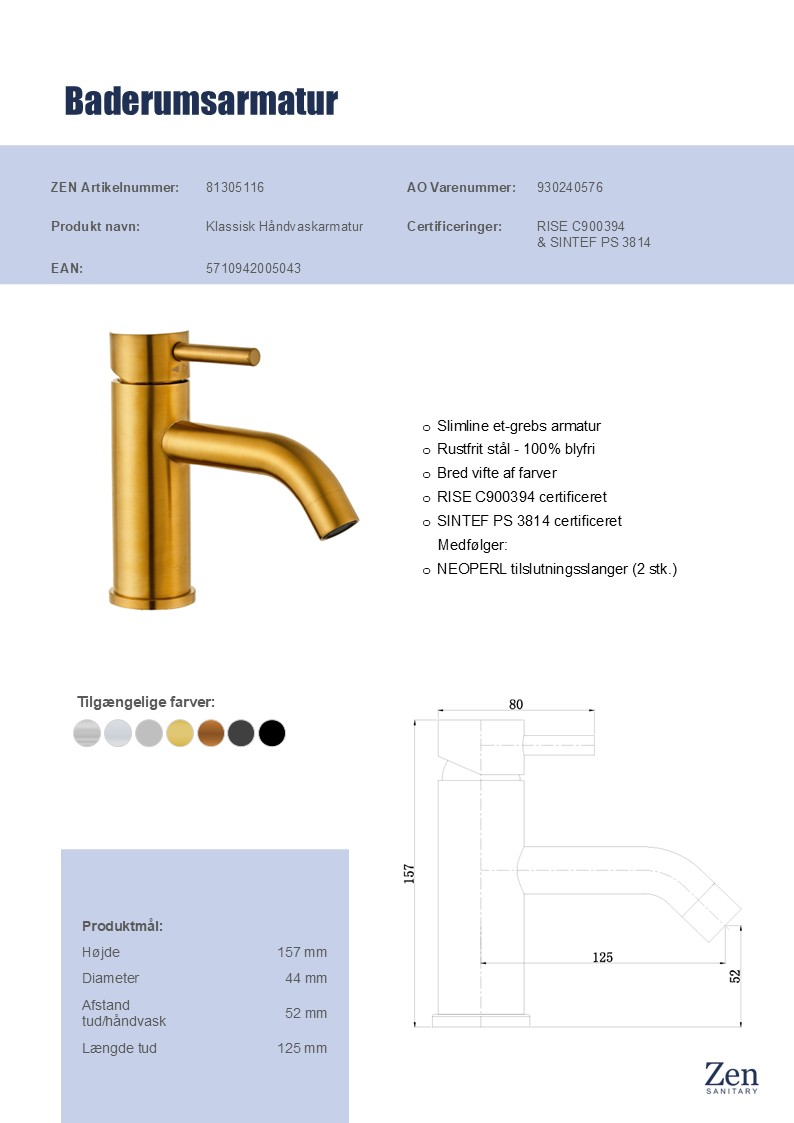 Zen Slimline håndvaskarmatur er det oplagte valg, når du ønsker et stilfuldt og funktionelt element til dit badeværelse. Her får du et armatur, hvor design, materialer og brugervenlighed går hånd i hånd – og som sætter prikken over i’et på din indretning.