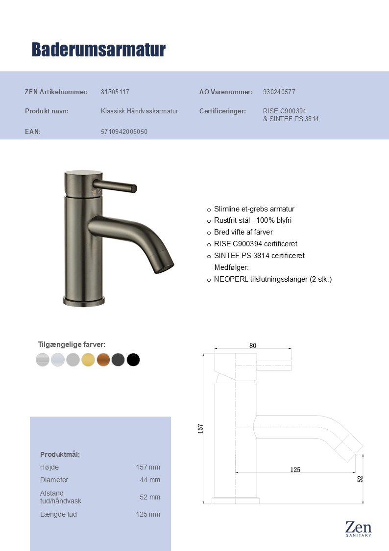 Zen Slimline håndvaskarmatur er det oplagte valg, når du ønsker et stilfuldt og funktionelt element til dit badeværelse. Her får du et armatur, hvor design, materialer og brugervenlighed går hånd i hånd – og som sætter prikken over i’et på din indretning.